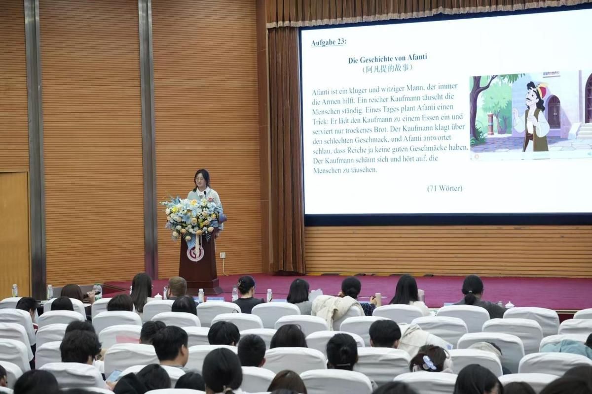 评委组组长张宇老师在比赛结束后对所有选手的表现进行点评,表示此次活动充分展示了同学们的德语学习成果和积极向上的精神风貌。