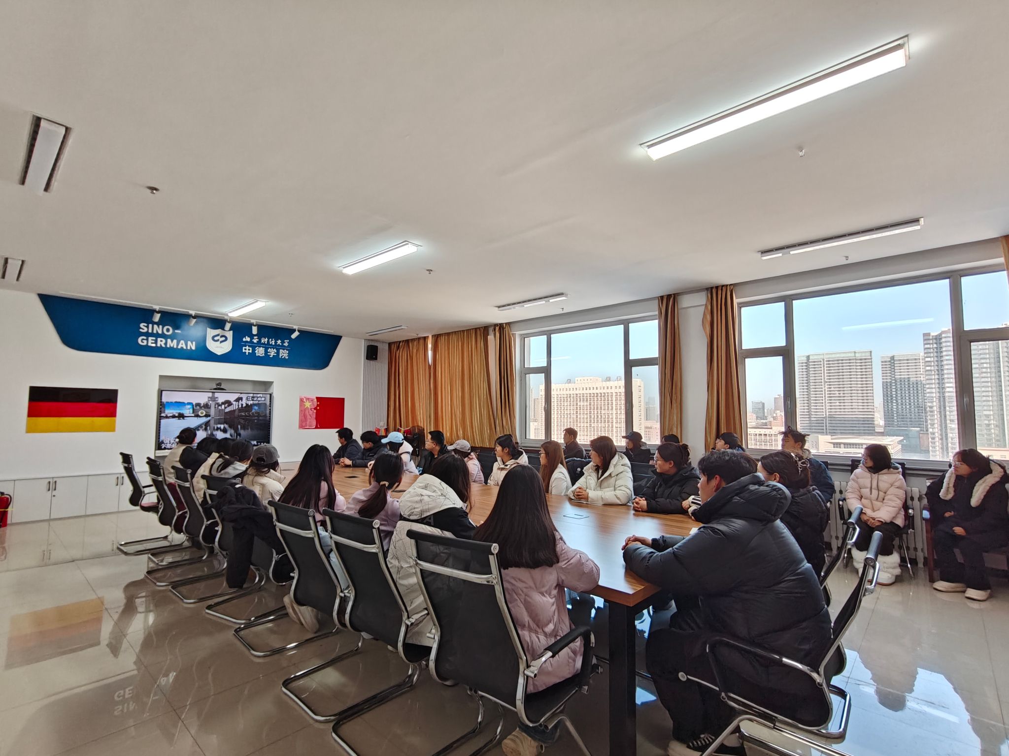 八十载沧桑巨变,精神薪火永传。在随后的交流分享环节,2022级中德金融学1班学生党员杨渊表示:“警报长鸣,钟声回荡,让我深切感受到以国之名祭奠的份量。我们必须铭记历史真相,珍惜来之不易的和平,以不懈奋斗告慰逝者。作为一名学生党员,更应在缅怀中坚定信仰,在实践中勇当先锋,将历史记忆转化为服务同学、奉献社会、报效国家的实际行动。”2025级中德会计学1班团员祝浩样谈到:“荧幕上的历史影像令人震撼,三十万同胞的苦难是民族共同的记忆,绝不能遗忘。作为新时代大学生,我们要扎实学好本领,以实际行动守护祖国,不负时代、不负青春。”另有5名即将出国交流的学生一致表示,将牢记历史、珍惜韶华、刻苦学习,努力提升跨文化沟通能力,积极讲述中国故事、传播中国声音,为祖国繁荣与世界和平贡献青春力量。