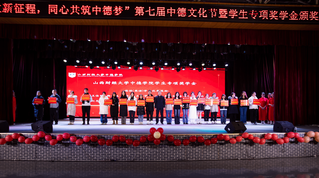 “踔厉奋发新征程,同心共筑中德梦”--第七届中德文化节暨学生专项奖学金颁奖仪式在坞城校区学生活动中心四层大厅隆重举行。校党委常委、副校长张卫国,宣传部、统战部、学生工作部、保卫部、教务部、国际合作交流部、就业创业中心、后勤管理部、校团委等部门负责人和各博雅斗地主