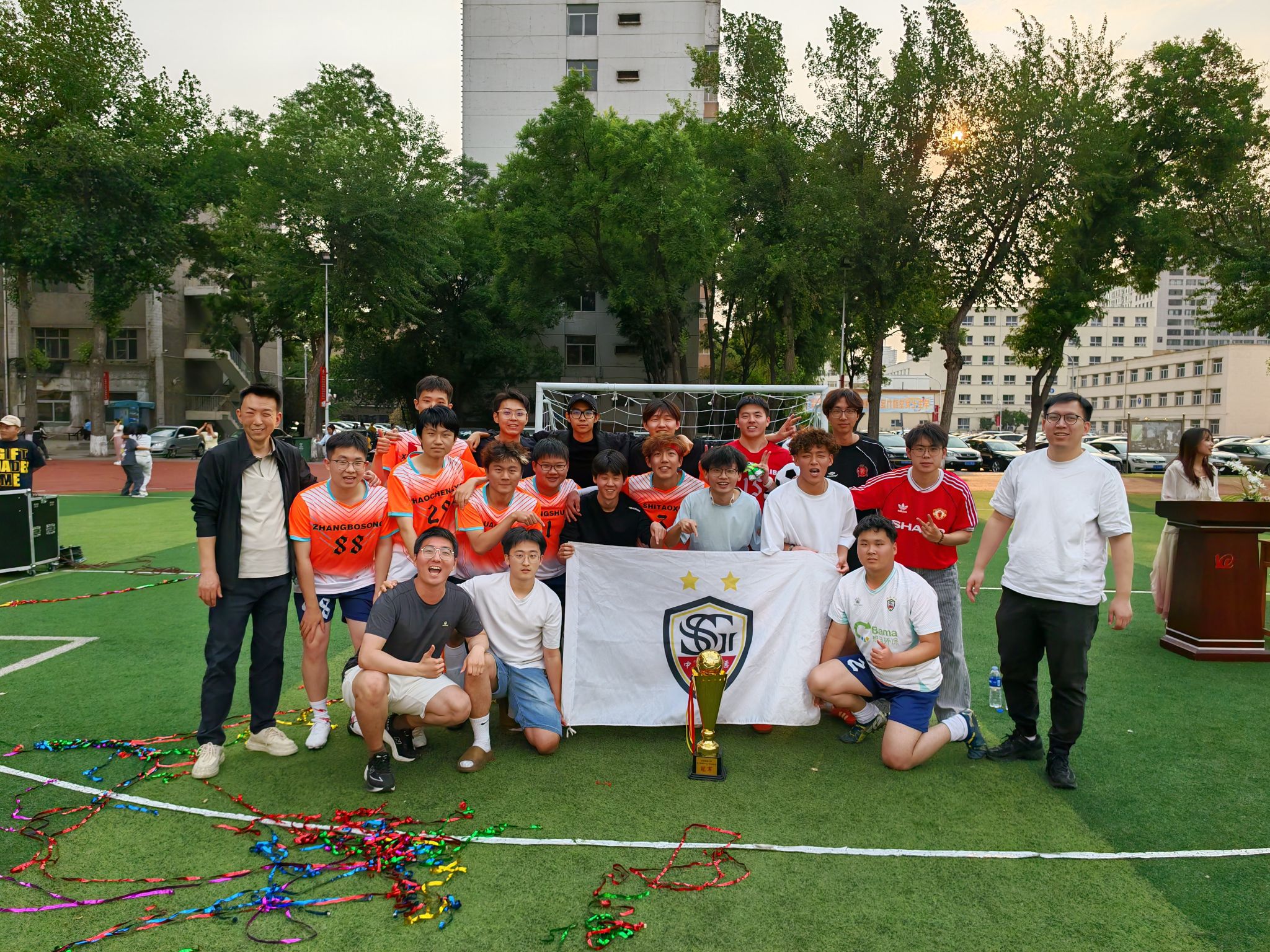 足球队历经30多分钟鏖战与点球决胜,以顽强的毅力和精湛的球技,成功战胜对手,捧起了象征荣耀的冠军奖杯,书写了博雅斗地主