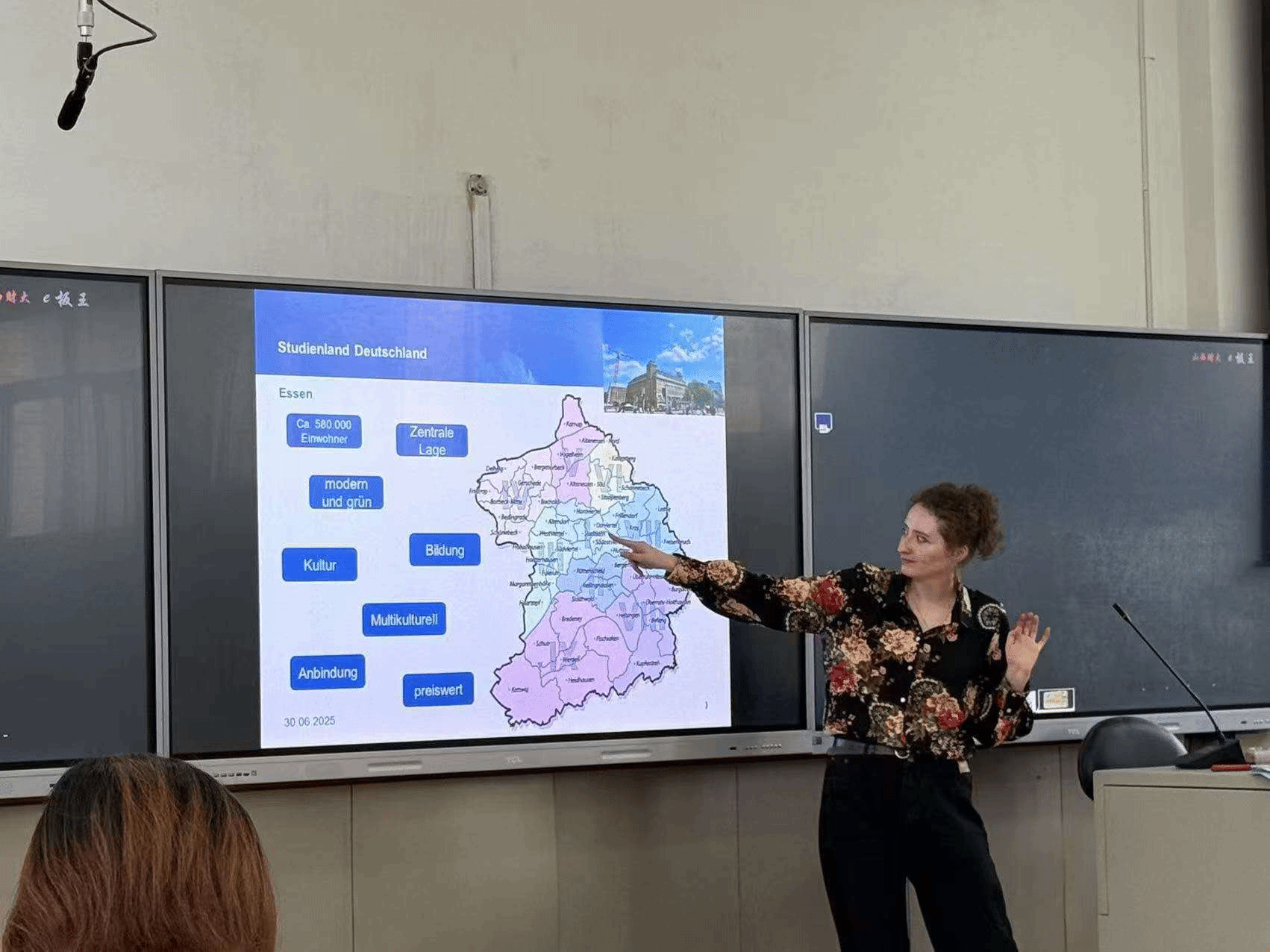 在慎行楼成功举办小学期专题讲座活动。本次讲座特邀外教Agnieszka Sobilo女士担任主讲人,以"德国大学双元制教育与全球竞争力培养砝码"为主题,为同学们深入解读了德国双元制教育模式的特色与优势,并分享了德国大学生活的实用信息。