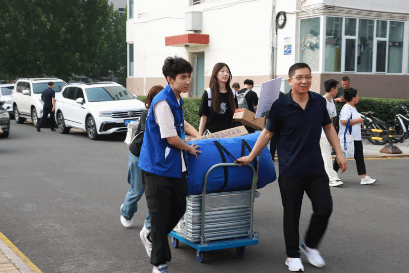 做好充分准备的志愿者们,以一站式服务护航新生报到:有序为新同学分发校园卡等必备品,耐心为新生与家长释疑解惑,同时主动帮忙搬运行李,让报到流程更省心。