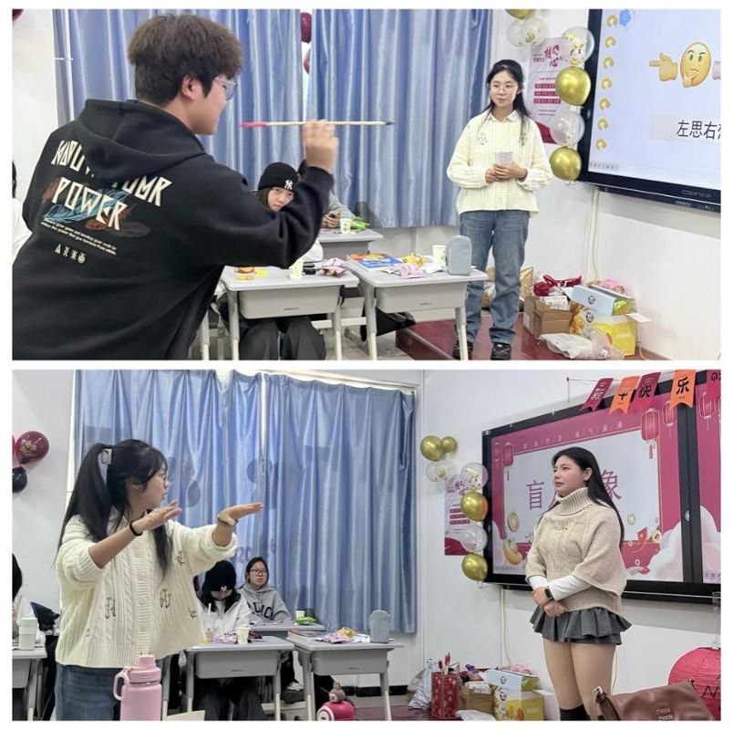 游园会精心设计系列互动环节,聚焦文化交融,展现青春风采,打造了一场别开生面的校园文化盛宴。其中,“德语猜红歌”环节备受瞩目,同学们通过德语关键词竞猜《我和我的祖国》《歌唱祖国》等经典曲目,既锻炼了语言实际运用能力,也在旋律重温中深化了家国情怀。现场气氛热烈,参与学生感慨道:“当德语遇见红歌,不仅让语言学习变得生动有趣,更让我们体会到跨越文化的心灵共振——原来经典可以如此传唱,形式亲切又新颖!”