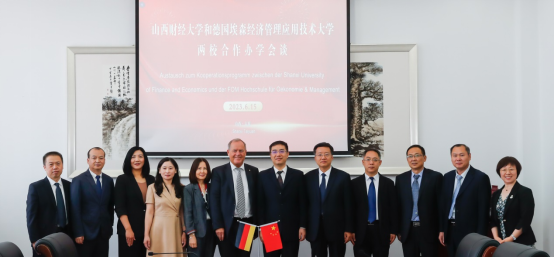 有关负责人参加了本次会议。校长田祥宇代表学校对Harald Beschorner校长一行的到来表示热烈地欢迎和诚挚的问候!他介绍了山西财经大学整体办学成效。回顾了两校多年合作办学成绩,表示两校在合作办学领域开展了长期且富有成效的合作,期待未来能够继续精诚合作、风雨同舟、资源共享、友好协商,进一步拓宽、拓深合作领域,打造我校国际化办学的“特色”高地。