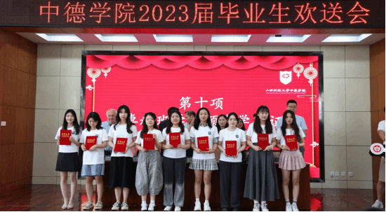 领导为每一位中德毕业生颁发毕业证书、学位证书,为校级优秀毕业生、院级优秀毕业生颁发荣誉证书,为毕业生2022学年博雅斗地主