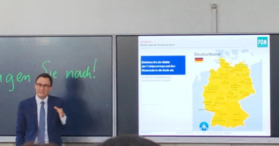 全体师生以饱满的精神状态投入到了新学期的工作和学习中,以求真务实、真抓实干的精神,拉开了新学期的大幕。本学期从德国FOM大学到我校授课的6名专业课教师西装革履,精神饱满,教学准备充分,授课内容熟练,教学效果突出;学生出勤率高,精神状态饱满,课堂秩序井然。针对检查中发现的问题,要求任课教师、辅导员随机对学生出勤情况进行督查,为教学工作的顺利开展打好基础。