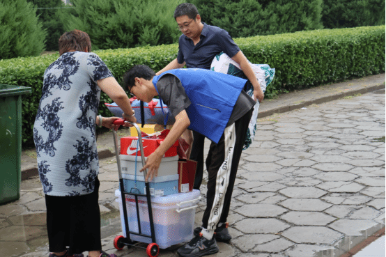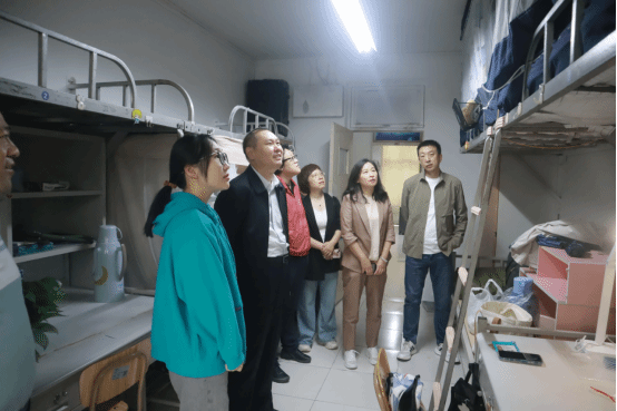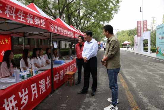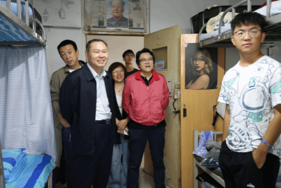 迎新点了解情况,并前往学生公寓与前来报到的新生亲切交谈,并且祝福学子们在财大不负韶华、学有所成。