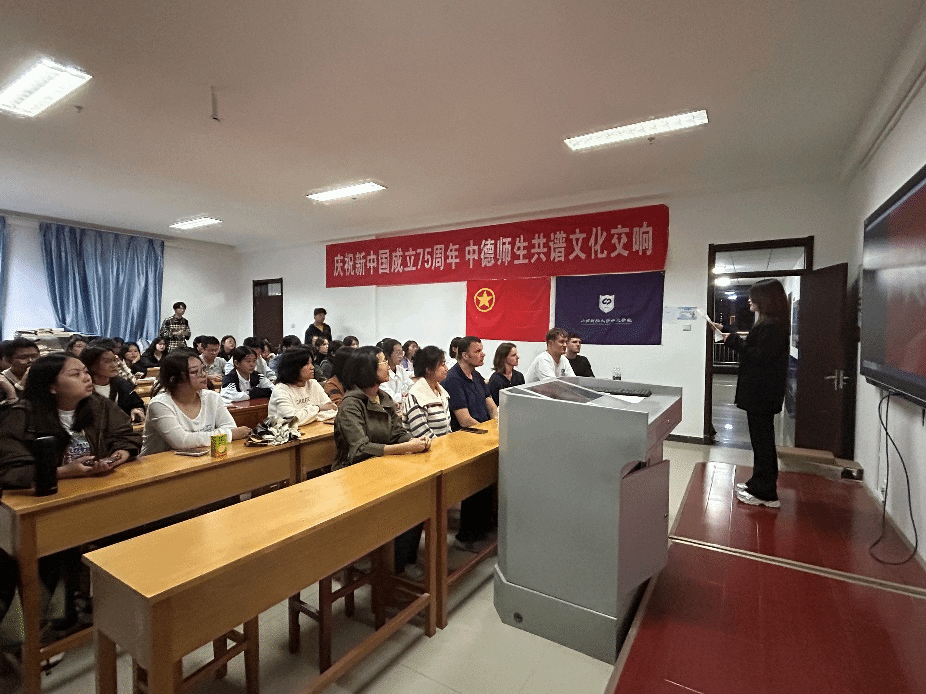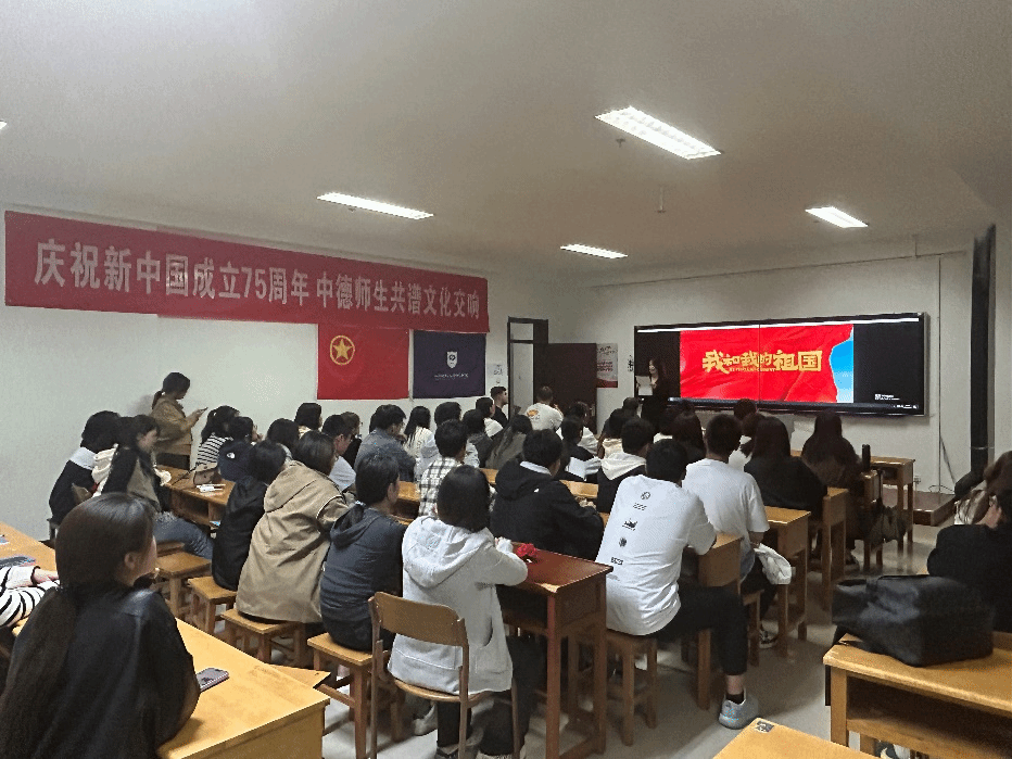 在博学楼727开展“德语电影之夜——观影《我和我的祖国》”活动。德国教授和师生代表们共同参加此次活动。