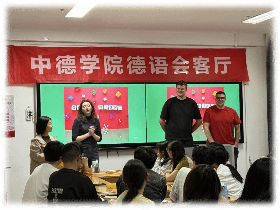 学生的德语学习实际情况,通过设置各类德语相关游戏,组织学生在游戏过程中积极运用德语交流互动,以此提升学生的德语语言水平,培养学生对德语学习的兴趣和热情,为学生营造良好的德语学习环境,促进学生全面发展。德方教师Stefan Eymann先生, Agieszka Soblio女士, Julian Leon Neuhaus先生以及德语教师到场,与同学们共同沉浸于德语语言与文化的趣味互动中。