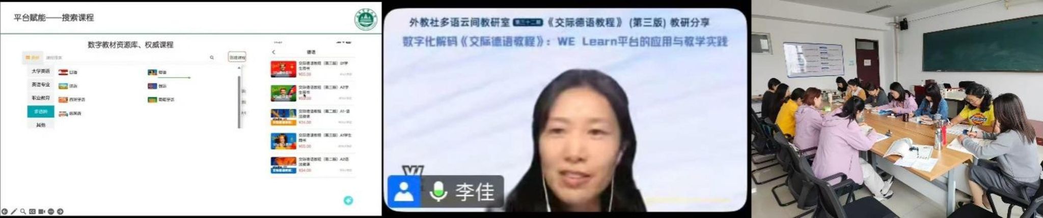 为顺应教育数字化发展趋势,9月25日晚,教研室全体教师准时在线参加了由外教社主办的“多语云间教研室”第三十二期讲座——数字化解码《交际德语教程》:WE Learn平台的应用与教学实践。本次讲座深入浅出地讲解了如何将WE Learn数字平台高效地融入日常教学,实现线上学习与线下课堂的有机结合,从而拓展教学维度,提升教学效率。学习结束后,老师们纷纷表示,此次“云端充电”及时且解渴,对如何利用数字工具丰富教学手段、构建混合式教学模式有了更清晰的认识和规划。