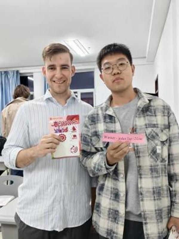 本关为零距离跨文化交流环节,参与者与德国助教们面对面展开时长1分钟的春日主题对话。交流话题丰富多样,包括 “你最喜欢的春天活动是什么”“德国复活节有哪些传统习俗”“描述你眼中的春日景色”“分享春日里的难忘经历”等。关卡不苛求语法的完美无瑕,更重视表达的勇气与交流的诚意,只要敢于开口、积极互动,就能顺利通关。通过真实对话,同学们不仅提升了口语表达能力,更深入了解了德国的文化习俗,增进了中德师生的情感联结。