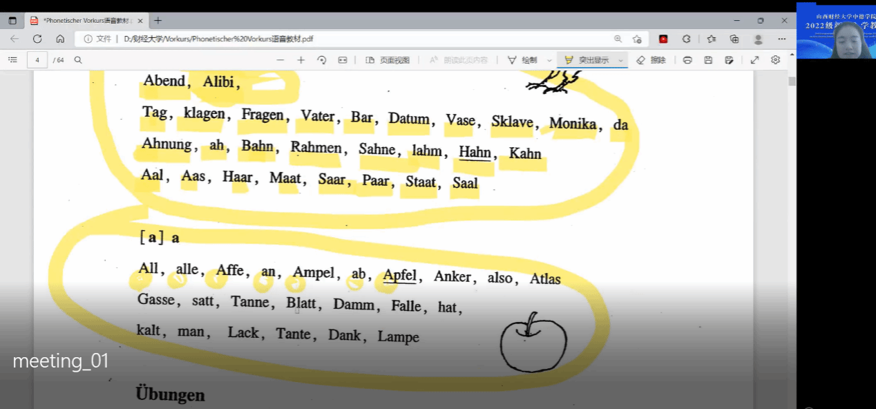 领导的指导下顺利开展,我也积累了语音教学阶段的线上教学经验,对任何上好第一堂德语课有了更多的思考。与此同时,还有更多的问题需要我深入探索,比如如何有效监督学生线上课期间的学习行为、如何更好地吸引学生的注意力等等。在今后的教学工作中,我也会开发新的教学方法,适应各种教学模式,不断提高自己的教学能力与效果。(德语教研室教师 王萌莎)