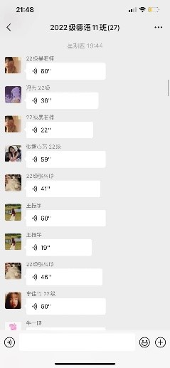 线上授课由于无法进行实时交流,对学生的口语水平影响较大。为了提高学生的口语能力,我在早自习的时候给学生放学习视频,让学生跟着视频跟读。每天晚自习都给学生留口语作业,要求学生“口语打卡”,在微信群中完成口语朗读作业,并给学生纠正发音。很多学生学习兴趣很高,在完全正确朗读得到点赞之后,发朋友圈进行“炫耀”。