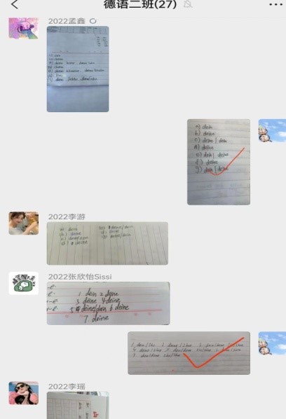 路漫漫其修远兮,吾将上下而求索。在教育的道路上,在线上教学中我们还需要多多摸索,但是我相信通过老师和学生的努力,我们的线上课程另有别样的风景。(德语教研室 张媛供稿)