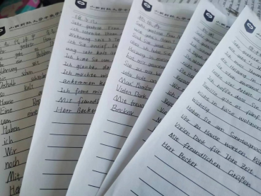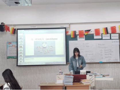 在以课文和语法学习为主的学习过程中,为了增加学生们的口语水平,还穿插进行了德语报告,由教师分配主题,由同学们各自收集资料、制作课件、准备演讲内容。