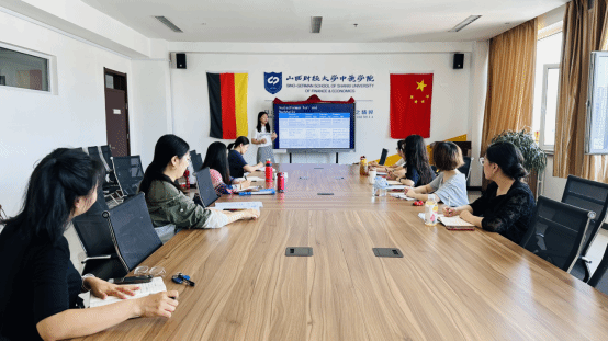 德语教研室召开了德语教研分享会,由教研室陈琛老师继续针对2023外教社全国德语教师教学法暑期研修班“德语课堂练习类型及师生互动方式”进行了精彩分享。