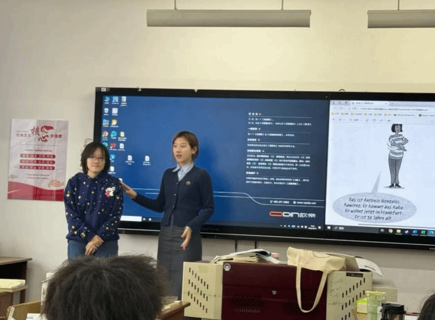 通过发音测试、模拟活动及对抗赛的多维度教学设计,学生在德语发音的准确性和流利度方面均有进步。此外,学生对日常生活场景的简单德语表达也有了较好的掌握。(德语教研室 阎婕供稿)