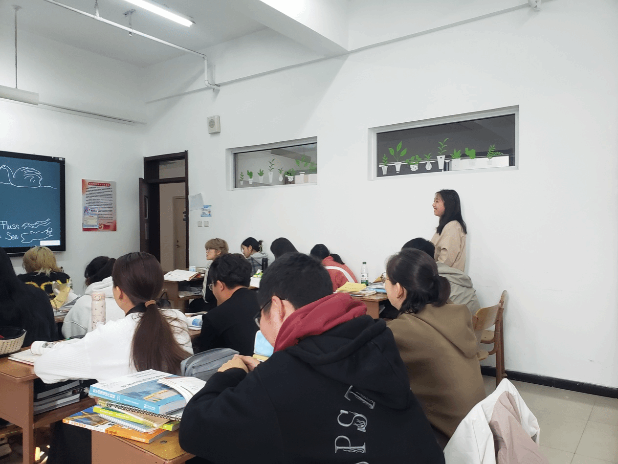 学习背景,其教学风格轻松、幽默。她极其重视课前准备,在11月5日与中方德语教师沟通课程进度及内容之后,精心研读教材,结合学情确定教学内容,融入丰富资源,以提升课堂的趣味性与互动性。