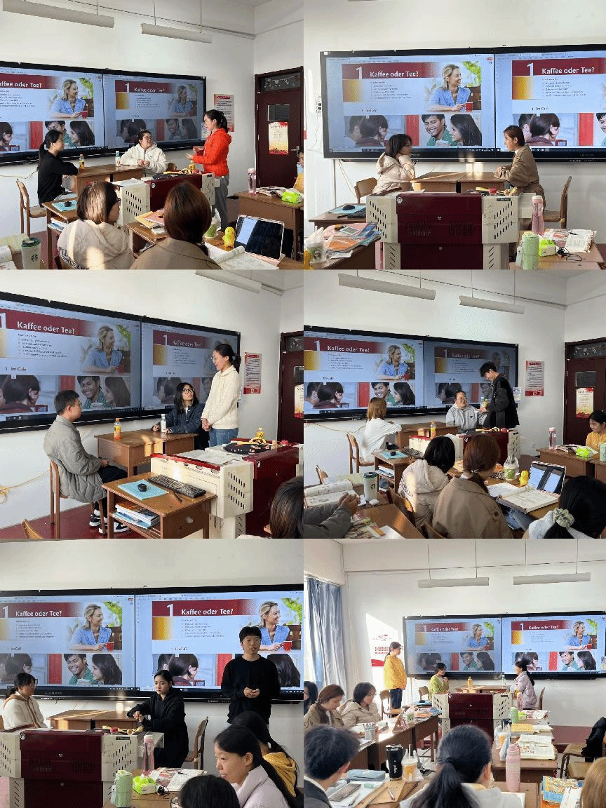 决定为大一新生每周增加一节与德国助教的交流课。在交流课上,助教Frau Steiner将会针对上周所学的课程内容与学生全程用德语交流,同时德语老师在场向学生提供必要的帮助。交流课旨在和学生分享德国人的生活习惯、社交礼仪等方面的知识,增进学生对德国社会的了解,拓宽文化视野。本周我们与助教Frau Steiner就上课形式和内容进行了研讨。
