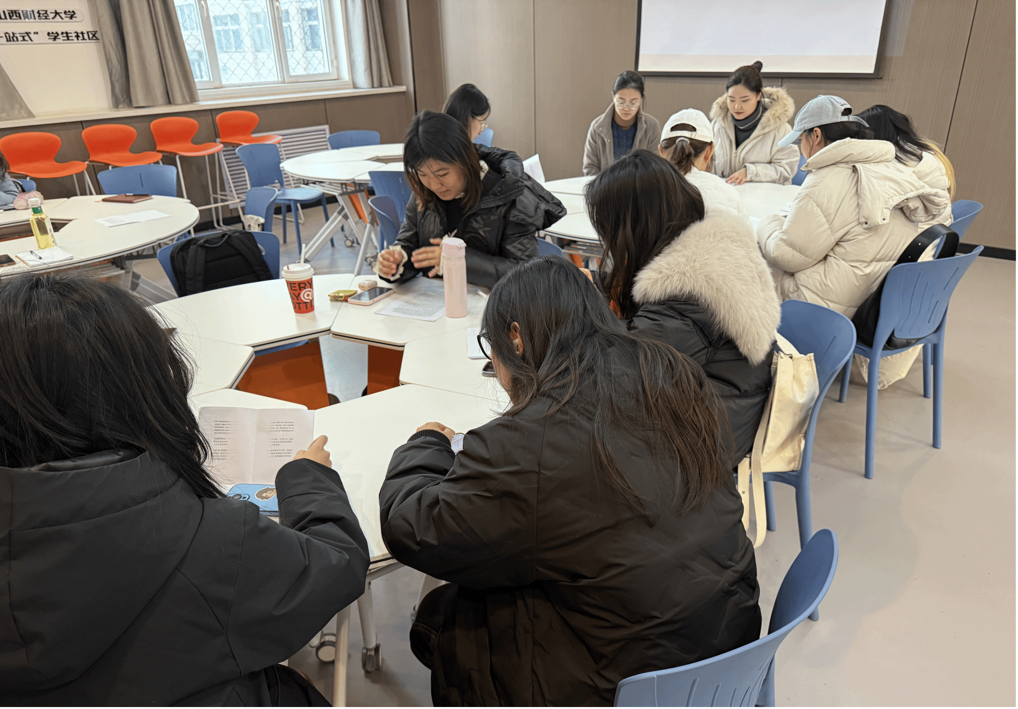 在“一站式”学生社区从游会客厅举办第二期“共话经典”读书会,共同阅读马克思经典名篇《青年在选择职业时的考虑》。